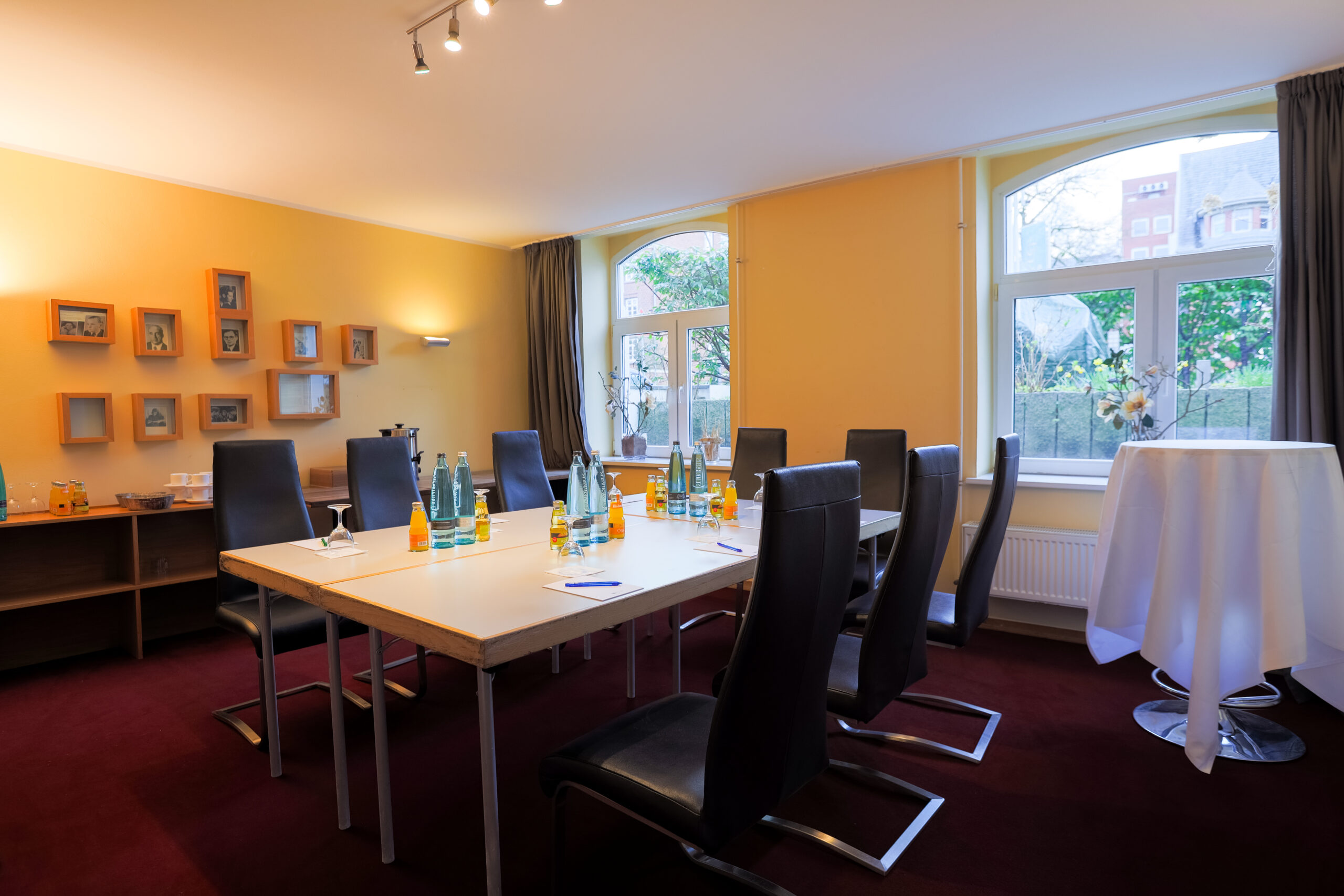 Unser kleinster Tagungsraum „Weiße Rose“ (35 m²) eignet sich ideal als Arbeitsgruppen- oder Besprechungsraum. Er ist mit einer Leinwand ausgestattet und bietet weiteren Platz für Flipcharts und Metaplanwände. Auch dieser Meetingraum verfügt über große Fenster und ausreichend Tageslicht. Zudem sorgt die stilvolle Einrichtung und Farbgebung für den ultimativen Wohlfühlfaktor.