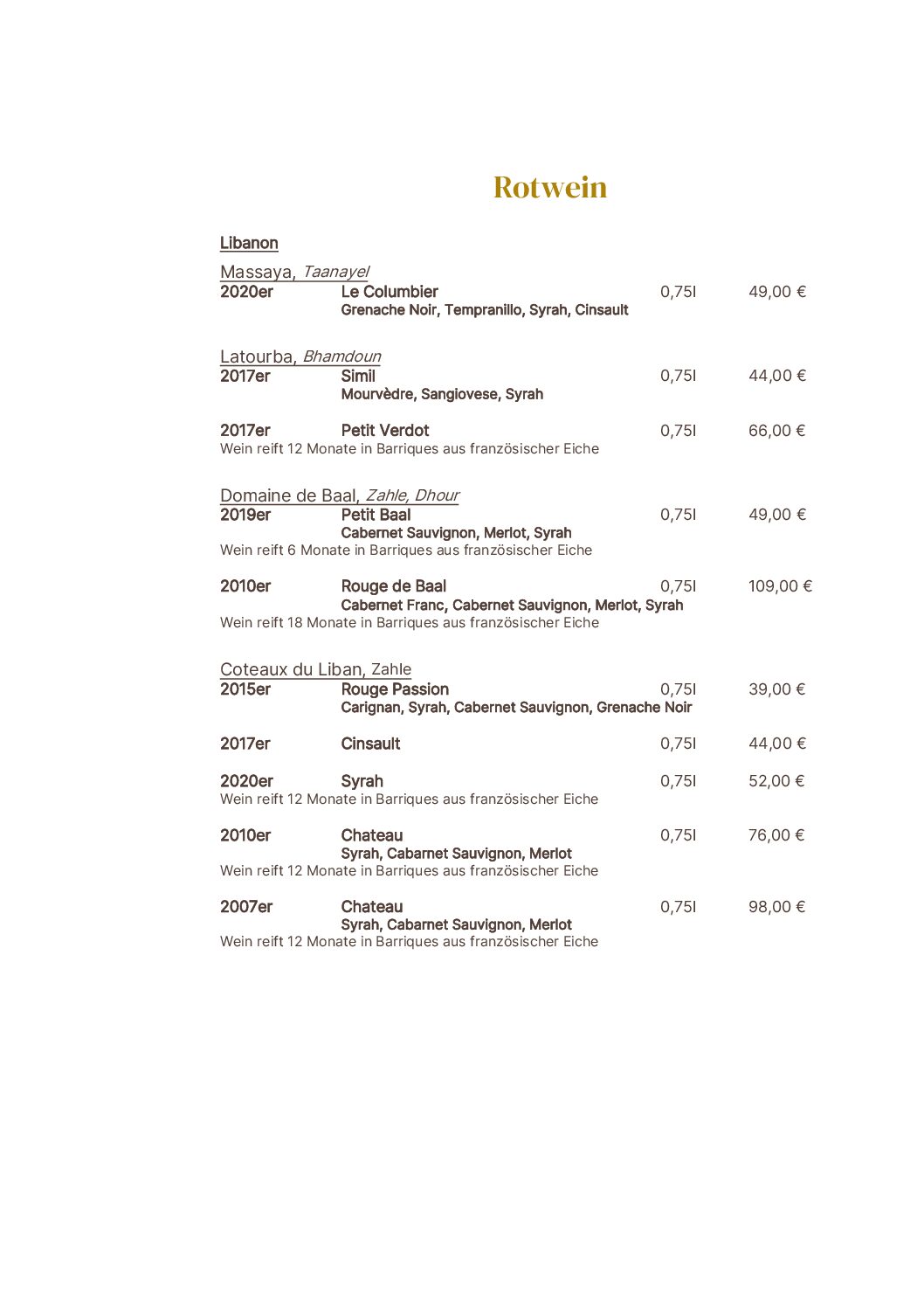 Unsere Weinkarte
